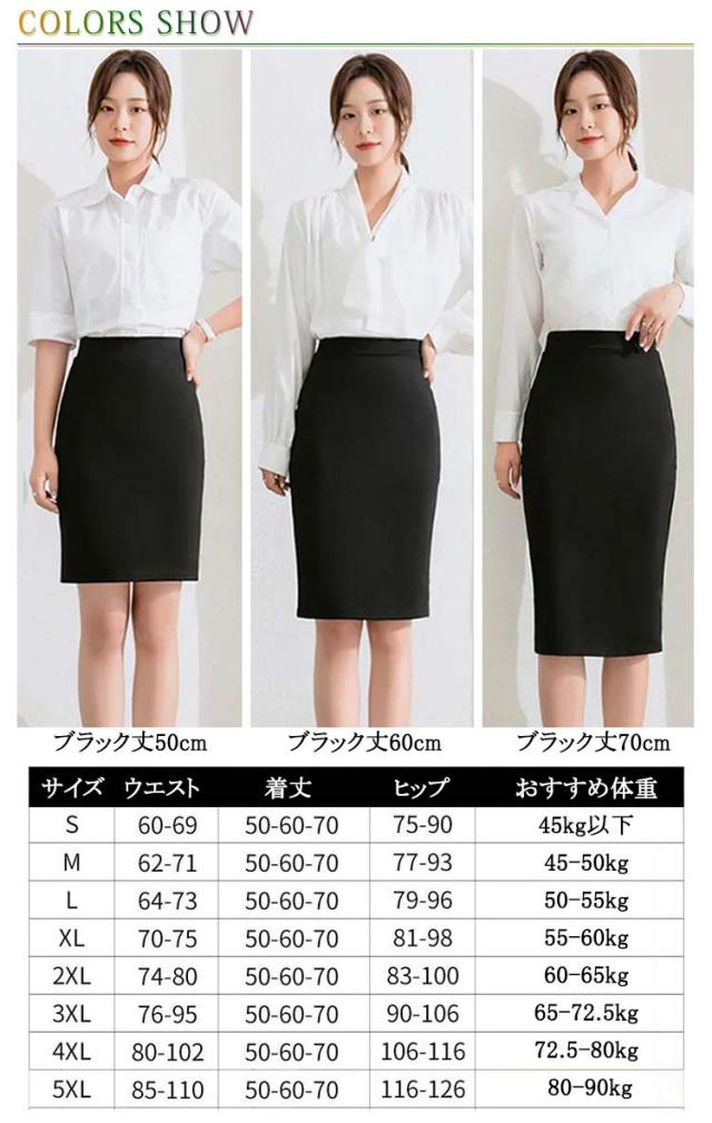 | ビジネスや通勤などの働くシーンに活躍するスカート。 洗濯してもシワになりにくく、常に清潔な状態を保つことができます。 ハイウエストで腰回りスタイルが良く見える。 ストレッチ性のある生地が身体にフィットして、女性らしいきれいなシルエットを作ってくれます♪ サイズはS〜5XLと大きいサイズまで幅広く取り揃えてます。 会社、オフィス、就活、リクルート、色々なシーンで活躍する膝丈タイトスカートです。 | |