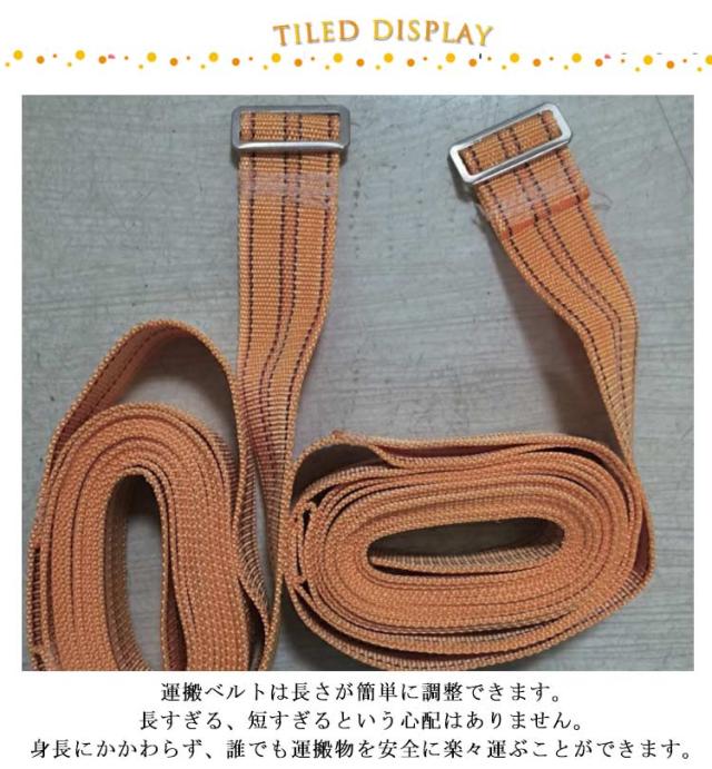 | 2本セット!引っ越しベルト この引っ越しベルトがあれば女性でも軽々と運べるようになります。 お引っ越しやお部屋の模様替えの際に、家具や電化製品などの重い物を運べる運搬用ベルトです 軽量で耐久性があり、長時間使用することができます。 からだ全体で荷物を支えれるから、重さを分散して負荷や痛みを軽減します。 運搬ベルトは長さが簡単に調整できます。長すぎる、短すぎるという心配はありません。身長にかかわらず、誰でも運搬物を安全に楽々運ぶことができます。 | |