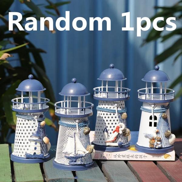 クリエイティブな鉄のキャンドルホルダー 燭台 青と白のキャンドルラック 家のテーブルの装飾 地中海の灯台 2022