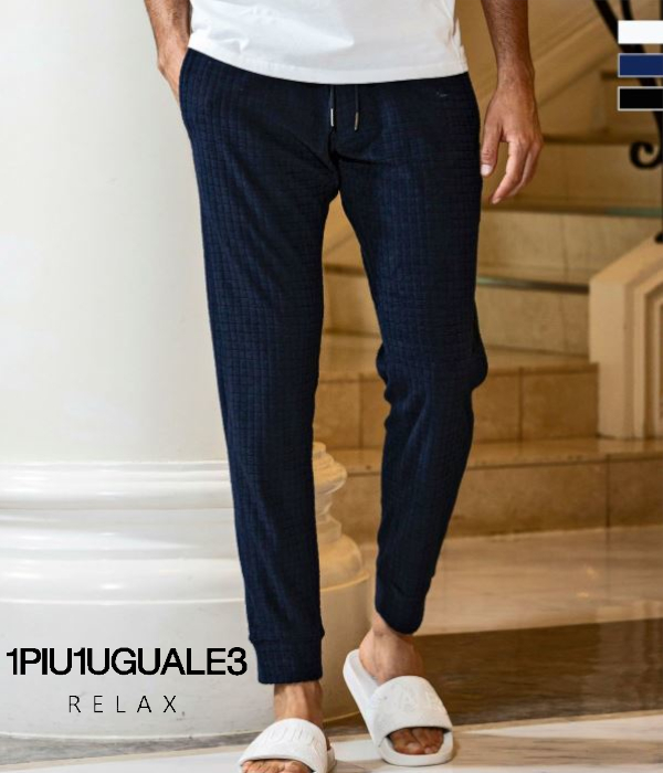 1PIU1UGUALE3 RELAX ウノピゥウノウグァーレトレ リラックス ブロックパイルパンツ メンズ ジャージ スリム カジュアル ルームウェア 部屋着