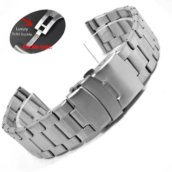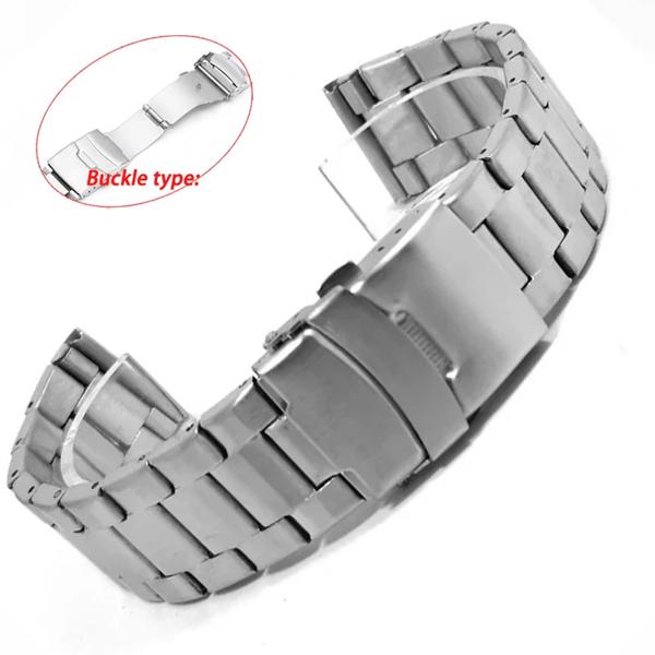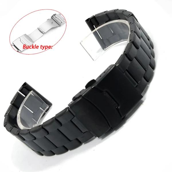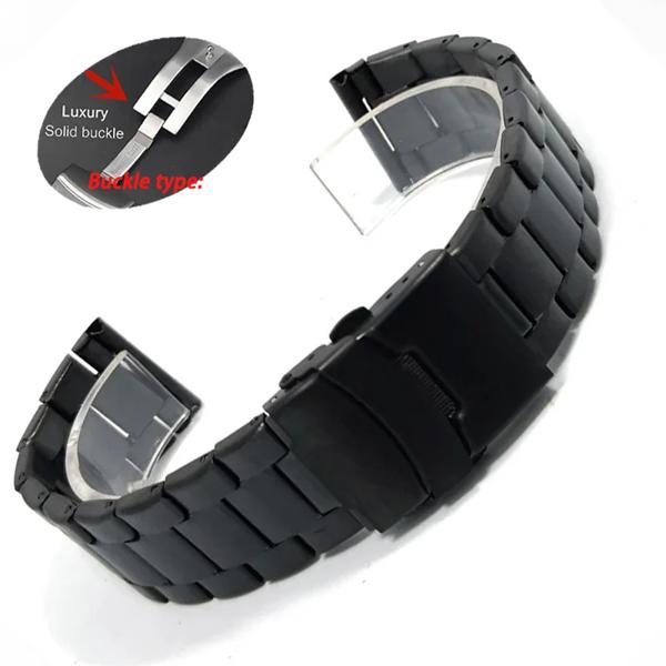 金属時計ストラップ 20 ミリメートル 22 ミリメートルダブルプレス折りたたみバックルユニバーサル交換リストバンドブラックシルバーツール付き時計アクセサリー