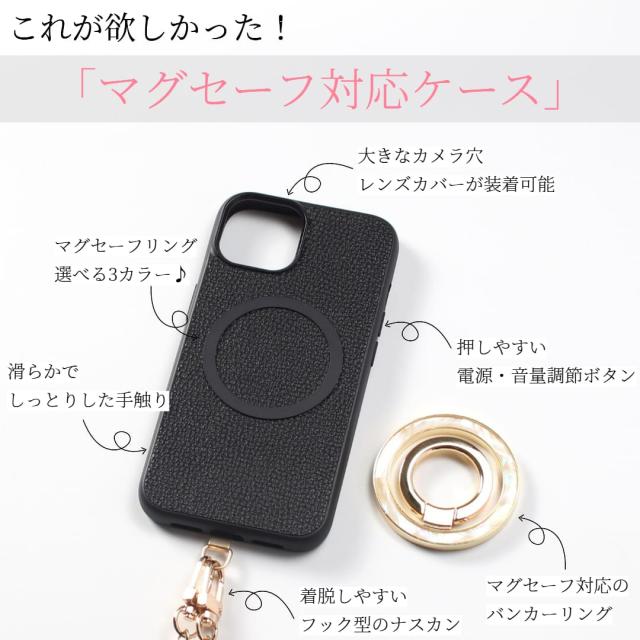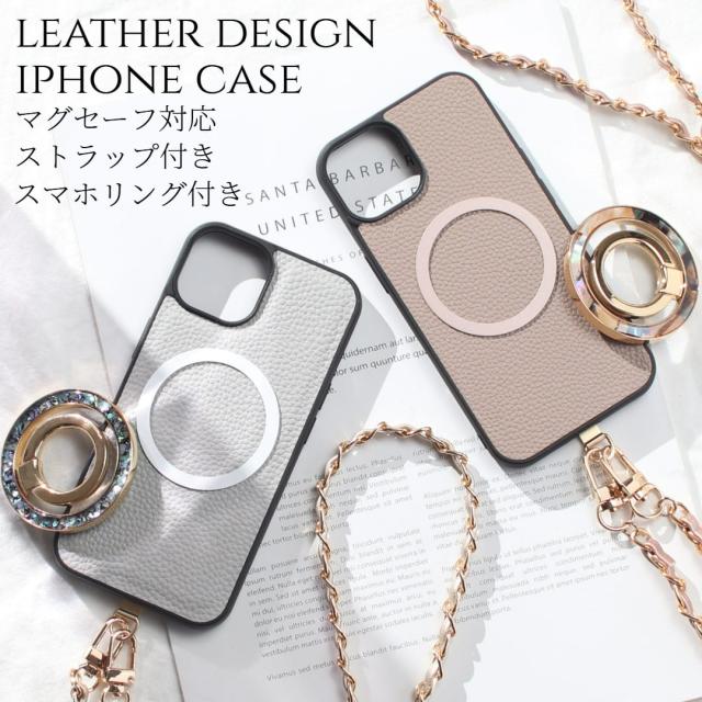 iphone ケース リング付き iphone16 iphone15 iphone14 iphone13 iphone12 pro SE レザー チェーン ストラップ magsafe マグセーフ ショルダー 肩掛け 16e 16pro 15pro 13mini リング アイフォン 16 15 14 13 12 se3 se2 ストラップ付き べっ甲 シェル レディース 送料無料