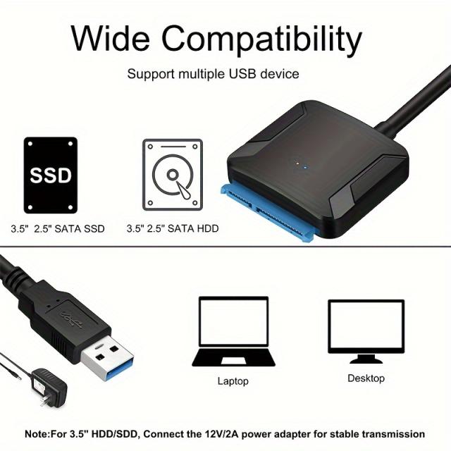3. Supports a drive's capacity of up to 6TB The SATA to USB 3.0 adapter allows you to connect a 3.5"/2.5" SATA SSD HDD with your computer to expand storage, upgrade the system, back up files, retrieve and recover data, and transfer data. It is fantastic for booting up old spare hard disks and recovering essential files from broken PC