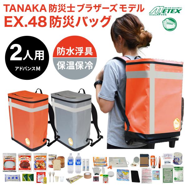 防災バッグ METEX EX.48 防災バッグ TANAKA防災士ブラザーズモデル 非常用バッグ 防災セット 防災グッズ 地震 火災 Mアドバンス オレンジ シルバーグレー
