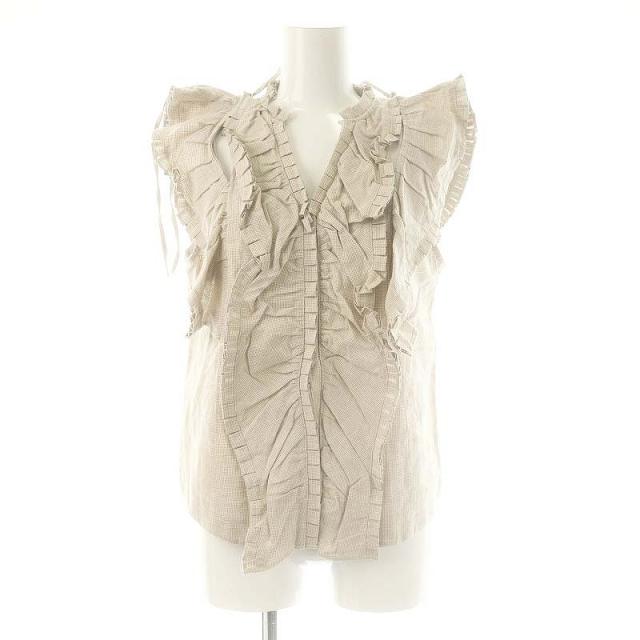【中古】スナイデル SNIDEL ダブルフリルブラウス ノースリーブ チェック F ベージュ /AT ■OS レディース