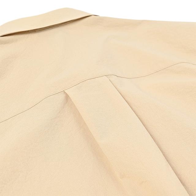 テーラードカラーを取り入れた上品な襟元が、アウトドアだけでなく街でも映える、汎用性の高い一着。シャツとしての型崩れもしにくく、両胸に配置された大きめのポケットは、デザイン性だけでなく実用性も◎。