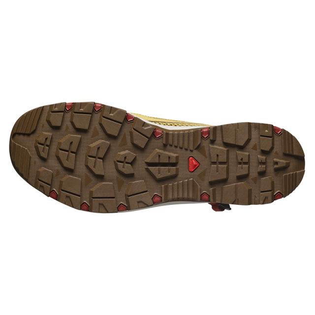 ラバーアウトソールに入った特殊なサイプは濡れた路面でもトレイルでも接地面との密着性を高めて抜群のグリップを発揮。