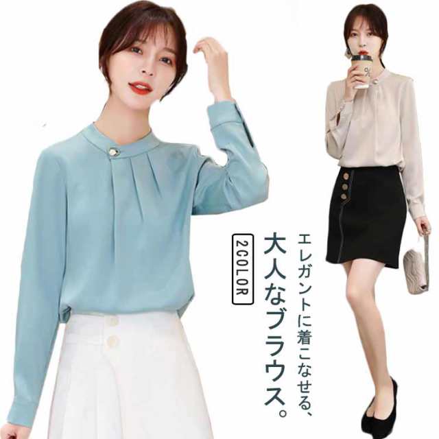 フロントタック ブラウス レディース フォーマル トップス シャツ ハイネック 長袖 ギャザー プチハイネック 長袖ブラウス フォーマルブラウス オフィスブラウス スーツインナー ブラウススーツ セレモニー OL 通勤 20代 30代 40代 50代 ミセス きれいめ