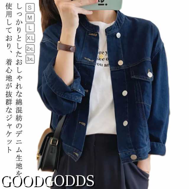 デニムジャケット レディース デニム ノーカラー ジャケット デニム レディース 春 ショート丈 ノーカラージャケット gジャン レディース スプリング 長袖 ライトアウター 春コート上着 春服 プリングコート 通勤 カジュアル きれいめ 大人