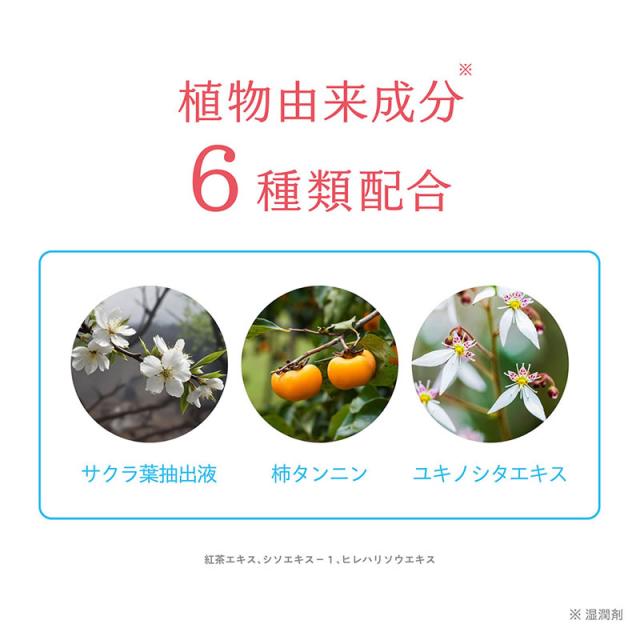 [その他の成分]柿タンニン、ユキノシタエキス、紅茶エキス、サクラ葉抽出液、BG、ペンチレングリコール、POE・POPデシルテトラデシルエーテル、POE硬化ヒマシ油、メントール、シソエキス-1、乳酸Na液、ヒレハリソウエキス、エタノール、クエン酸、クエン酸Na、フェノキシエタノール、香料
