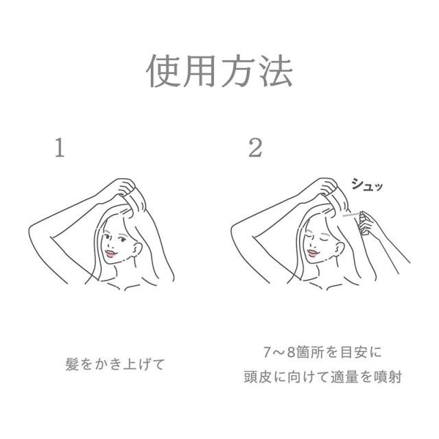 ・頭皮に使用する場合は、髪をかきあげ、頭皮に向けて適量をスプレーしてください。
