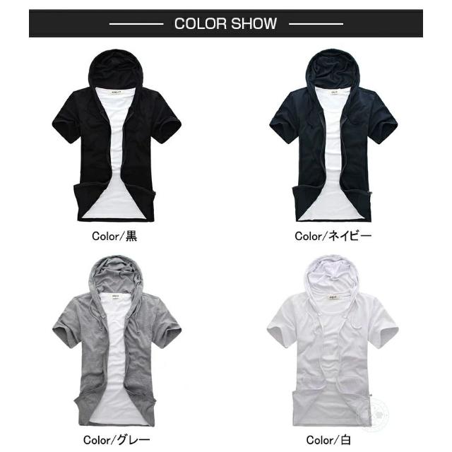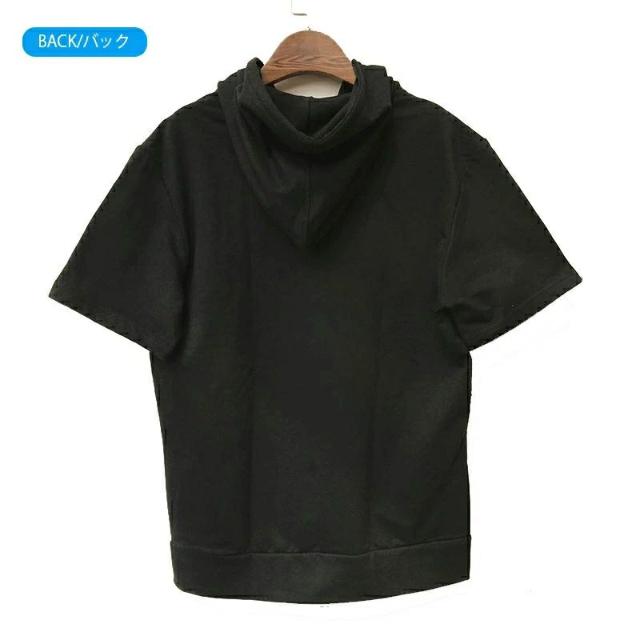 ジップアップ 半袖 パーカー メンズ 無地 薄手 夏パーカー カットソー 半袖パーカー 羽織 トップス カジュアル フード付きTシャツ スポーツ ダンス ストリート系 夏服 20代 30代 40代 50代 父の日 ユニフォーム イベント 運動会