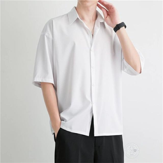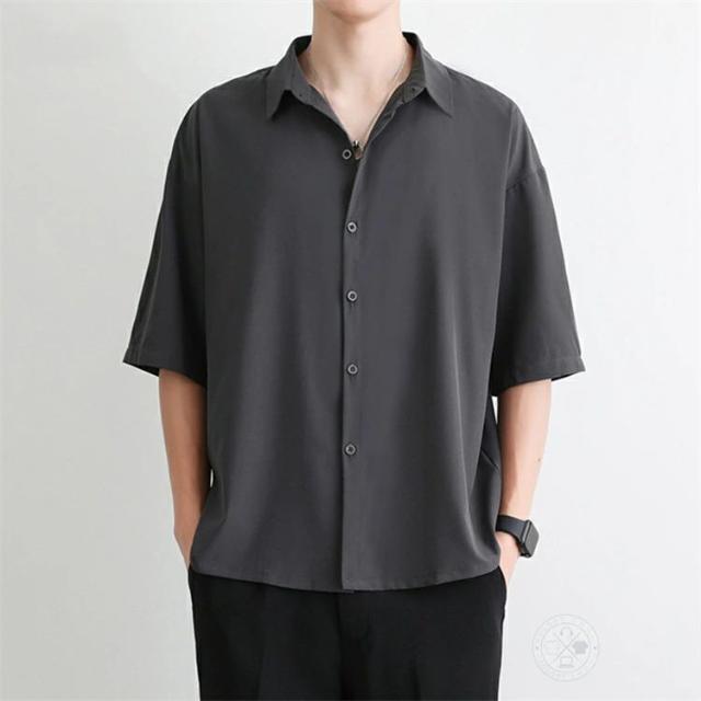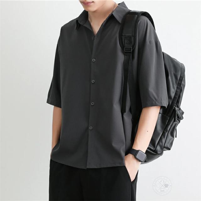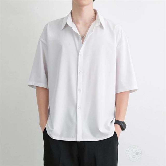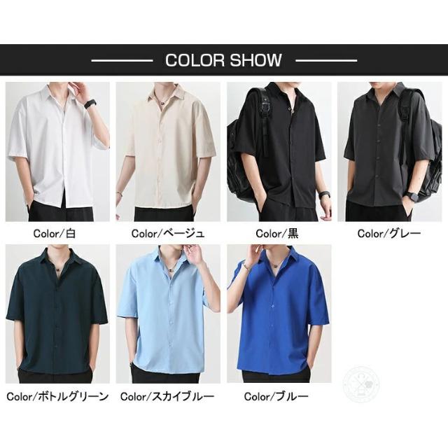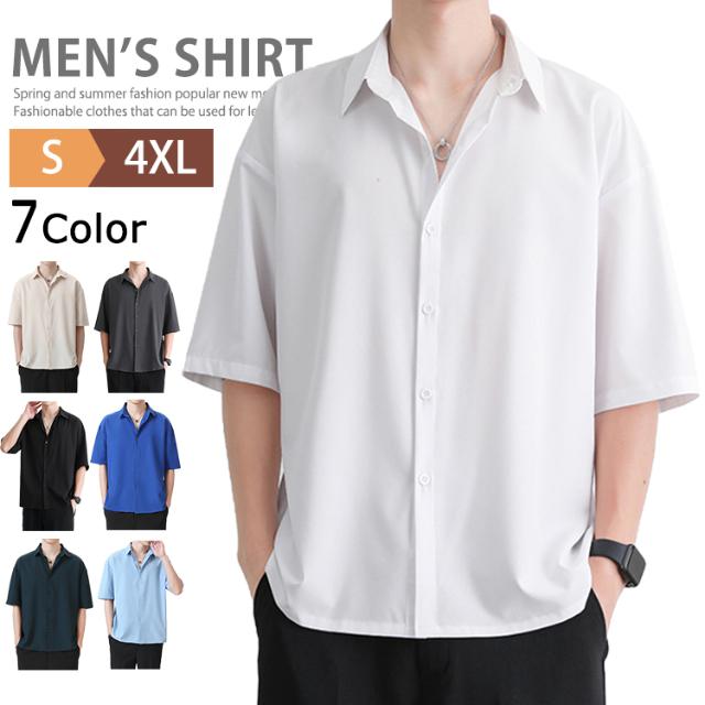 シャツ メンズ 大人 5分袖 半袖 ビジネス カジュアルシャツ 夏 春 冷感 無地 ゆったり ワイシャツ ビッグシルエット トップス シャツジャケット 五分袖シャツ 半袖シャツ ダンス 紳士服 通学 通勤 新生活 父の日 プレゼント ギフト ファッション