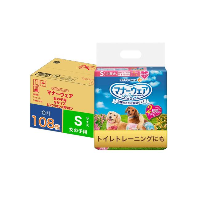 マナーウェア 女の子用 S 108枚 小型犬用 ピンクリボン・青リボン 犬用紙おむつ【ネット限定】