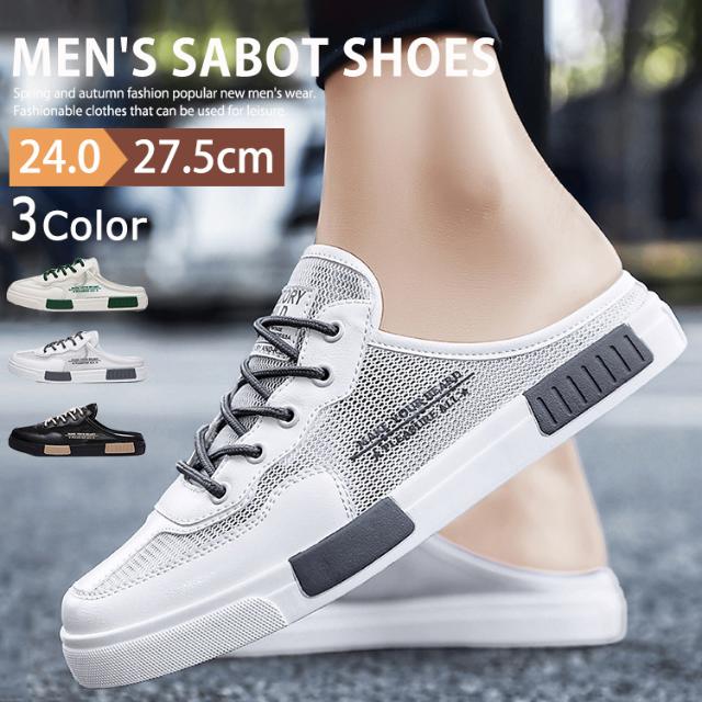 かかとなし スニーカー メンズ サボ サボサンダル 靴 黒 白 アウトドア スリッポン メッシュシューズ カジュアルシューズ サボシューズ おしゃれ スポーツ メンズシューズ ビーチ お出かけ 職場 散歩 外履き 部屋履き 通気性 父の日 プレゼント