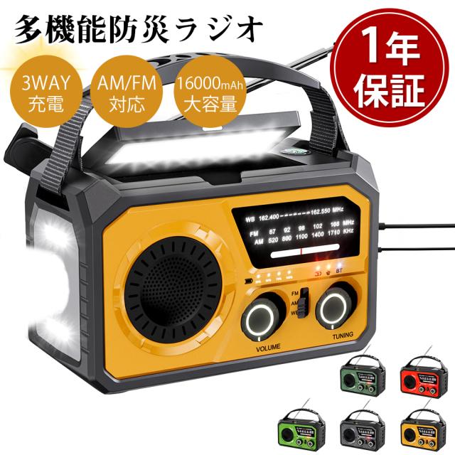 【1年保証付き★驚いた16000mAhバッテリー】防災ラジオ 多機能防災ラジオ 多機能ラジオ 手回し充電 読書ランプ付 AM/FMラジオ SOS緊急警報 16000mAh 非常用照明器具 スマホに充電可能 ソーラー充電 USB充電 停電対策 防災グッズ イヤホンジャック付き 取扱説明書付き