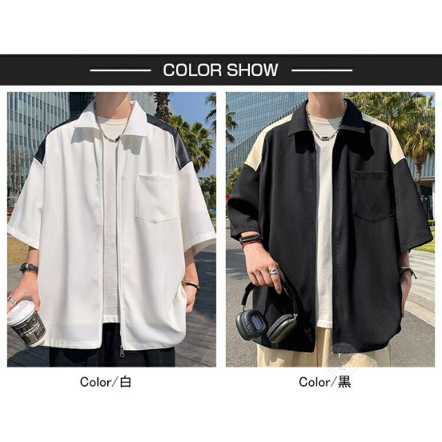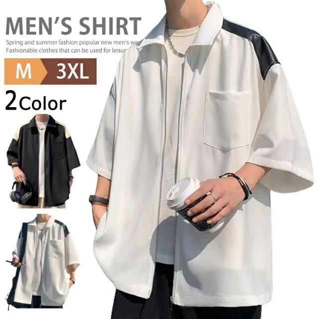 半袖シャツ メンズ カジュアルシャツ ゴルフ シャツ ジップアップシャツ トップス シャツジャケット ジップシャツ ZIPシャツ ワークウェア スポーツ UVカット シンプル クールビズ ストリート系 作業服 作業着 薄手 春服 夏服 服 父の日