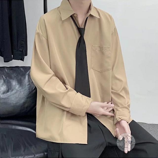 ネクタイ付き シャツ メンズ カジュアルシャツ 長袖シャツ ビジネスシャツ トップス 白シャツ 黒シャツ 無地シャツ 大きいサイズ おしゃれ 春物 秋服 夏用 長袖 ユニセックス カジュアル 韓国ファッション ストレート ダンス 衣装 父の日 プレゼント