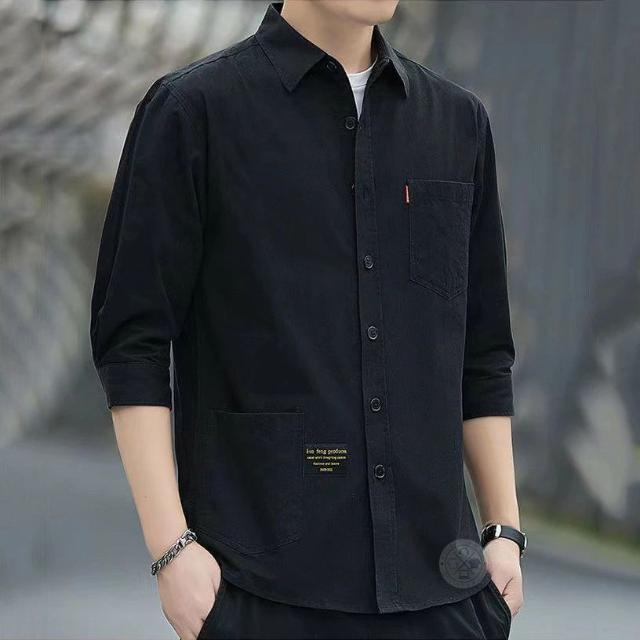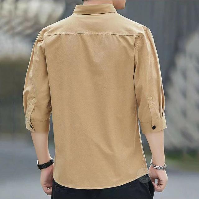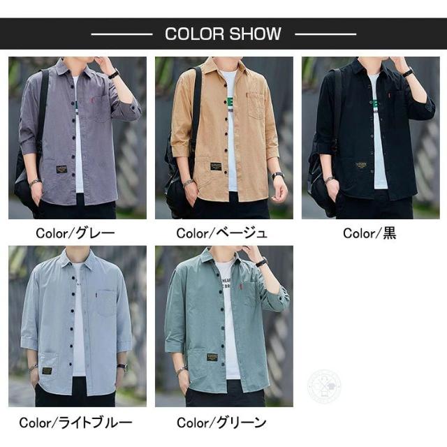 シャツ メンズ 七分袖 7分袖 綿100% 無地 大人 トップス カジュアルシャツ コットンシャツ ワークシャツ シャツジャケット 綿シャツ 黒シャツ 五分袖 薄手 涼しい きれいめ 父の日 春夏 夏服 登山 作業着 仕事着 胸ポケット 羽織り メンズファッション