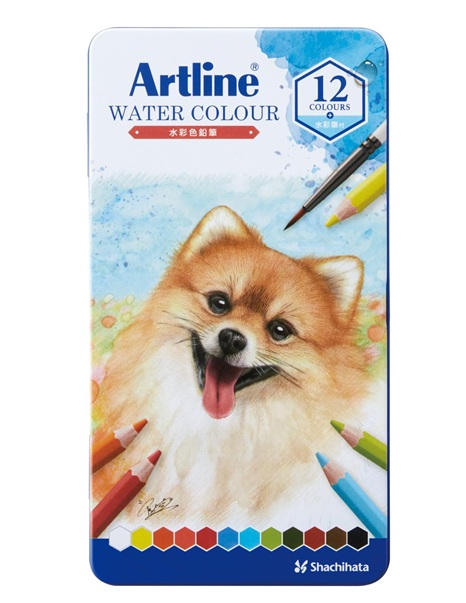 Artline 水彩色鉛筆は、水で溶かすと水彩画のようなタッチで様々な表現が得られる水彩色鉛筆。