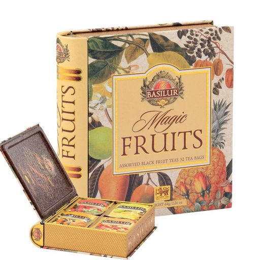 バシラーティー 【世界65カ国で愛される紅茶ギフト】マジックフルーツアソートブック 4種類×8袋(全32袋入り)フルーツフレーバー セイロンティー 缶入り プレゼント おしゃれ 可愛い 紅茶…