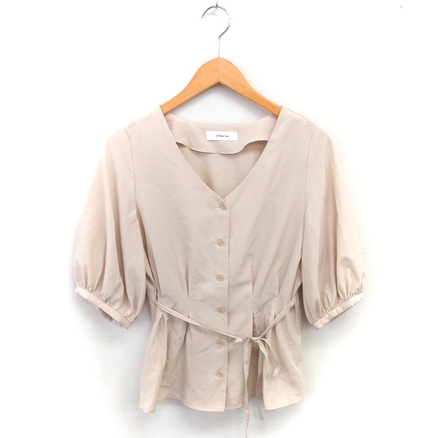 【中古】ウェアーズインク wears inc シャツ ブラウス ノーカラー ウエストリボン 半袖 F ベージュ 薄茶 /TT