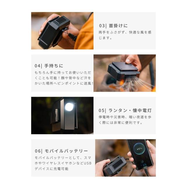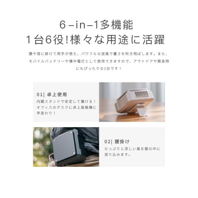 腰掛け扇風機 扇風機 ポータブルファン 卓上 首掛け USB充電式 おしゃれ 緊急充電 ランタン 懐中電灯 3段階風量 LEDライト 羽なし 静音 小型 持ち運び おすすめ