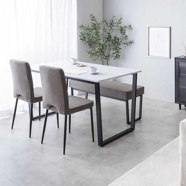 石目調の天板×ブラックスチール脚が洗練された印象を与えるスタイリッシュなデザイン。