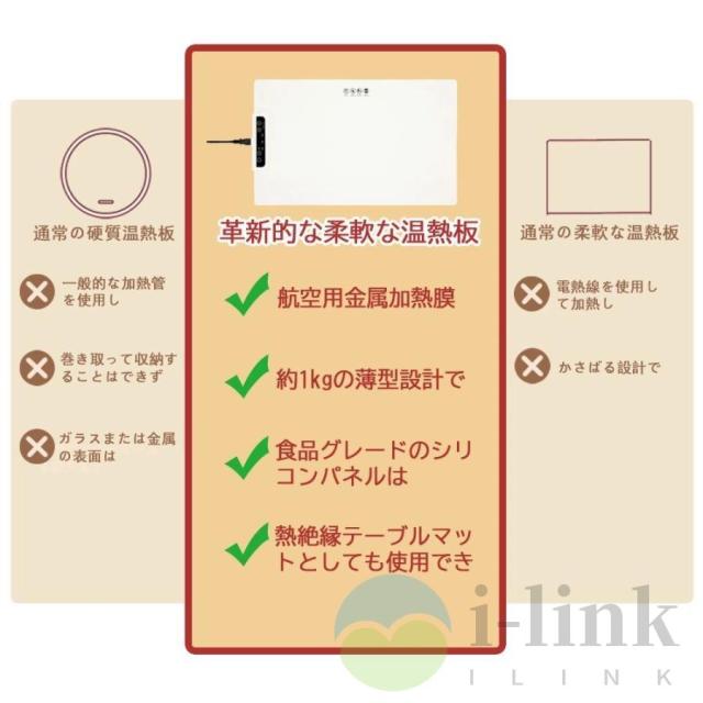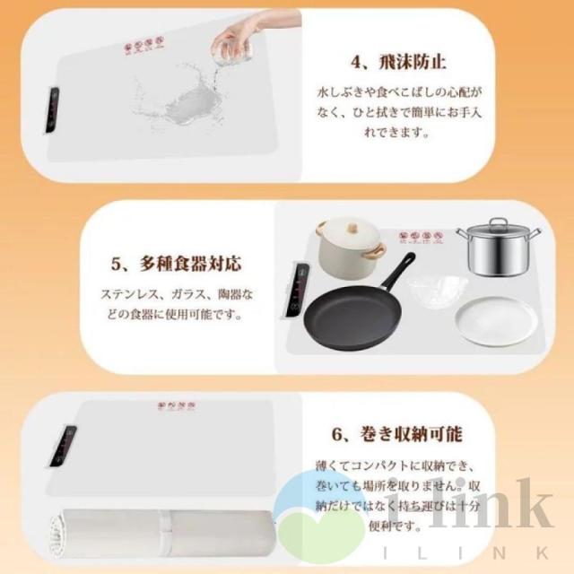 電気保温トレイは簡単に巻き起こすことができ、厚さ7MMの超薄型の革新的な省スペースイノベーション、キッチンのスペースを大幅に節約可能。