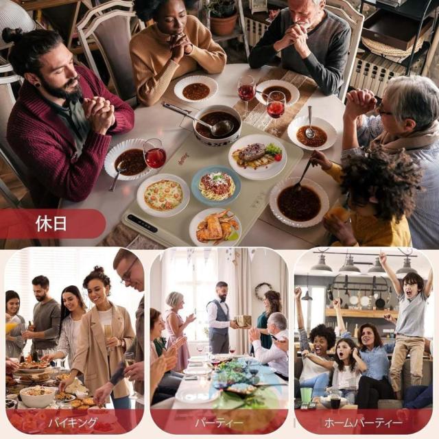 ホットプレート 電気保温トレイ 食品保温プレート 折りたたみ式 3段階の温度設定 60℃/80℃/100℃ 多機能食品断熱ボード フードウォーマー 収納袋付き 簡単