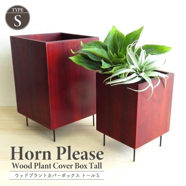 鉢カバー プランターカバー Horn Please ウッドプラントカバーボックス トールS 3.5号鉢対応 スクエア 木製ボックス アイアンスタンド付き 可変型 ガーデン ガーデニング インテリアグリーン シック モダン インテリア