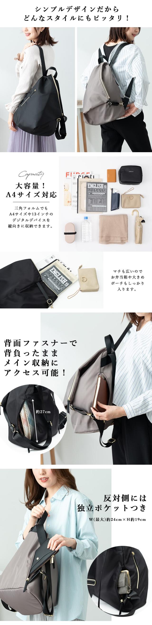 毎日持って出掛けたくなる!シンプルだけど個性的な三角フォルムリュック。