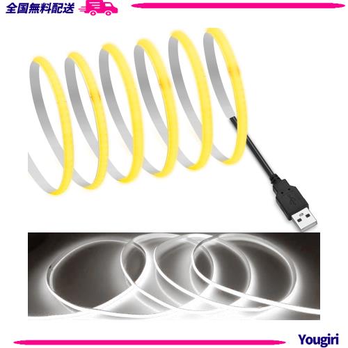 【RYE】 COB テープライトLEDストリップライトフレキシブル 高密度 幅5mm 隠れたLEDテープライト4.5m 320LEDs/m 白光色6000K DC5V 180°