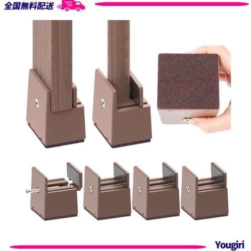 【テーブルたかさ調節】パッケージ内容:4個セット(高さ5cm)。適応脚サイズ0~5.4cm調節可能。色:ブラウン。