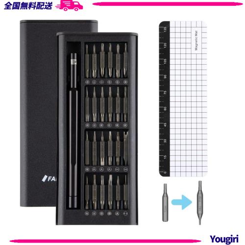 【磁気設計】?強力な先端磁気吸着設計:ネジをドライバーの先端(強力な磁石内蔵)に磁気でくってつけネジの落下を防ぎ、簡単に片手でネジを回せるので、とても便利です。?マグネット式収納ケース:磁気でビットが固定されてバラバラにならない、簡単に収納できます。?【マグネットシート】修理中にネジや小型部品などの紛失を防止するために、マグネットシーツ付属していますので、安心でご修理いただけます。