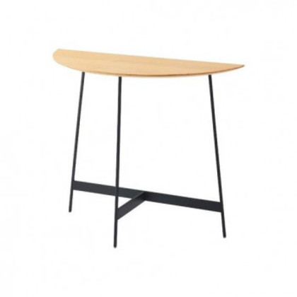 商品詳細:シンプルかつスタイリッシュなデザインのコンソール 「美しい木目×アイアンレッグ」異素材の組み合わせが上品な印象を与えるコンソール。美しいシンメトリーのフォルムで、天板が半円なので様々な場面で活躍します。シンプルながらお部屋にアクセントを加え、空間をグレードアップしてくれます。 生産国:中国 素材・材質:天然木化粧合板(オーク) アイアン 商品サイズ:W83×D35×H72cm 重量:8000g 仕様:組立式静的耐荷重:15kgラッカー・粉体塗装