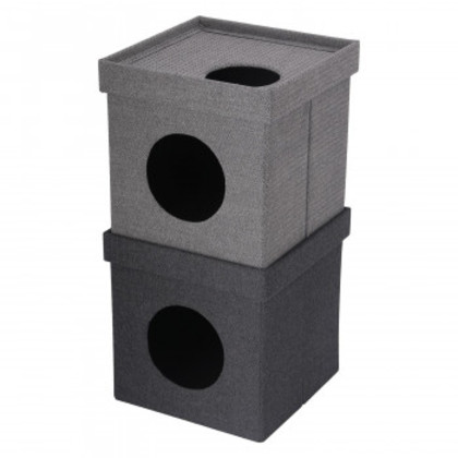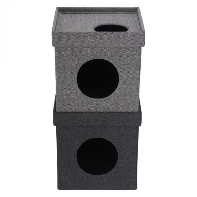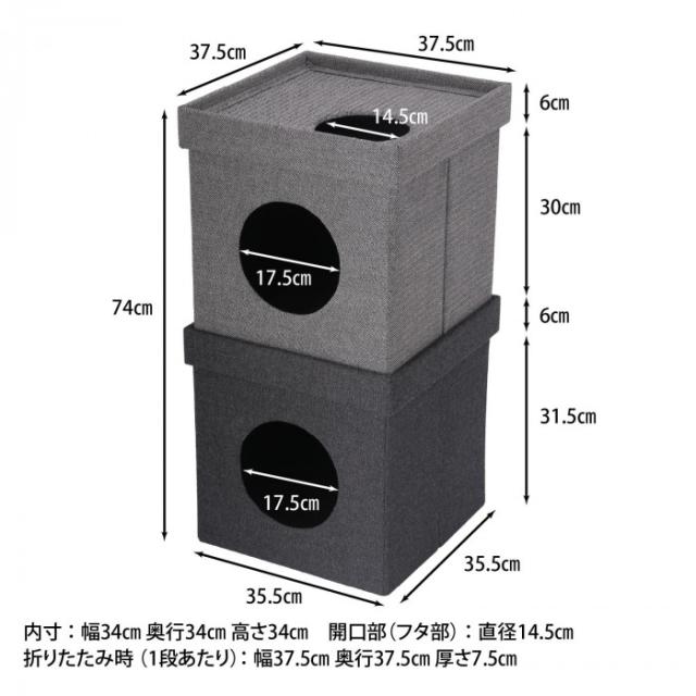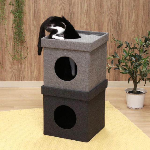 不二貿易 (C/D:53713) ペットハウスキューブ2段 GY/BK |b03