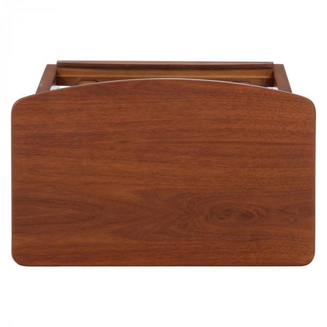商品詳細:マガジンラックとしても使えて便利なテーブルです。 生産国:ベトナム 素材・材質:甲板の表面材:天然木化粧繊維板(ウォルナット)構造部材:天然木(ラバーウッド) 商品サイズ:全体:幅550×奥行395×高さ550mm、天板厚み:18mm、天板:550×340mm 重量:4000g 仕様:カラー:ミディアムブラウン耐荷重(天板):3kg表面加工:ウレタン塗装