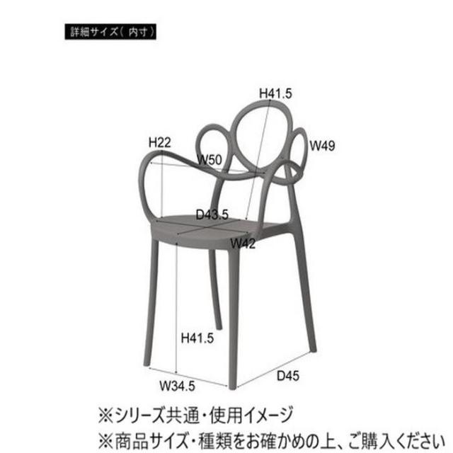 商品詳細:アーム部分の曲線がひじや手にぴったりと沿うデザイン。汚れてもお手入れのしやすいポリプロピレン素材を使用しています。スタッキング可能なのでコンパクトに収納できて場所を取らず、片付けも簡単です。 生産国:中国 素材・材質:ポリプロピレン 商品サイズ:W56.5×D53×H83.5×SH45cm 重量:4.5kg 仕様:スタッキング:可完成品耐荷重:80kg