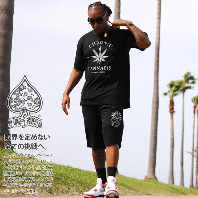 ACE FLAG 上下セット 半袖 ブランド Tシャツ ハーフパンツ メンズ 春夏用 黒 グレー 大きいサイズ エースフラッグ セットアップ 2Pac 馬蹄 大麻 マリファナ ガンジャ ヘンプ HEMP ビッグシルエット b系 ヒップホップ ファッション ストリート系 2025 新作 AF-SE-TS-196