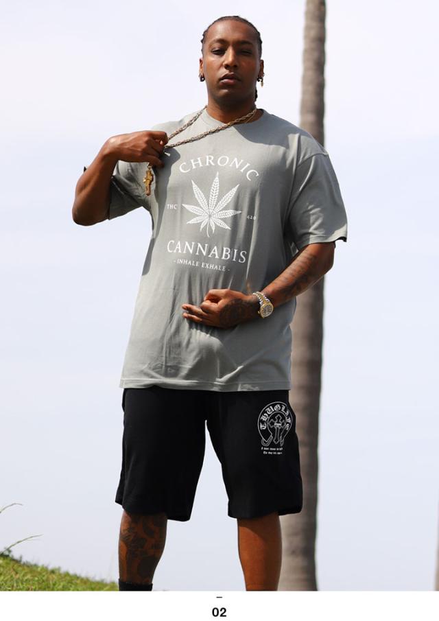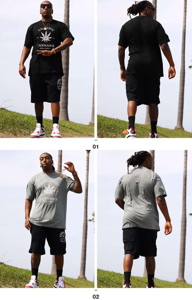 Tシャツとスウェットハーフパンツの上下セット。トップスにはヘンプに関するワードやモチーフ、ボトムスにはウエッサイを代表する伝説的ラップ・アーティストの「タトゥー」をドロップ。