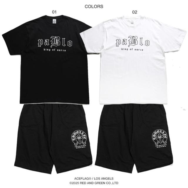 ACE FLAG 上下セット 半袖 ブランド Tシャツ ハーフパンツ メンズ 春夏用 黒 白 大きいサイズ エースフラッグ セットアップ 2Pac 馬蹄 麻薬王 パブロ エスコバル ビッグシルエット b系 ヒップホップ ファッション ダンス ストリート系 ハイ 2025 新作 AF-SE-TS-201