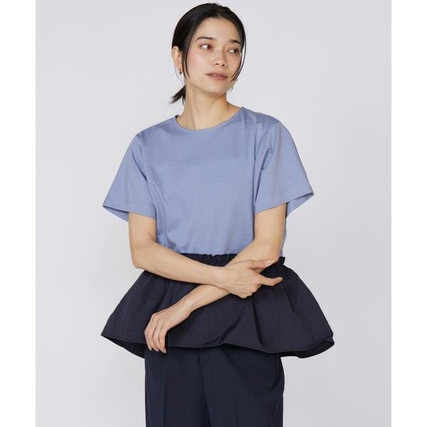 ■デザインシンプルなボディに、ペプラム部分には軽くハリコシのある異素材がドッキングされたデザインプルオーバー。ウエストから広がるペプラムは上品で華やかな女性らしい印象にしてくれます。ウエスト位置に切替が入ることでスッキリ見せながらも、お尻回りまでしっかりカバーできる万能デザインです。フレンチスリーブで二の腕をカバーしながら女性らしい抜け感を加えます。■素材高級超長綿のスーピマコットンを32Gのハイゲージで編むことにより今までにないシャープさを表現。またロイヤルクール加工で極限まで毛羽をそぎ落とし上品な光沢を表現しました。綿であるのにドレープ性があり淡色でも透けにくくストレッチ性の高い素材です。・水洗い可・後ろボタンあり■サンプル撮影商品■こちらの商品はサンプルでの撮影となっております。実際の商品とは、サイズや色味、素材、デザイン等の仕様が若干変更になる場合がございます。