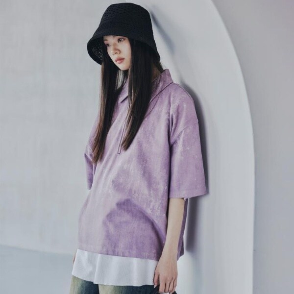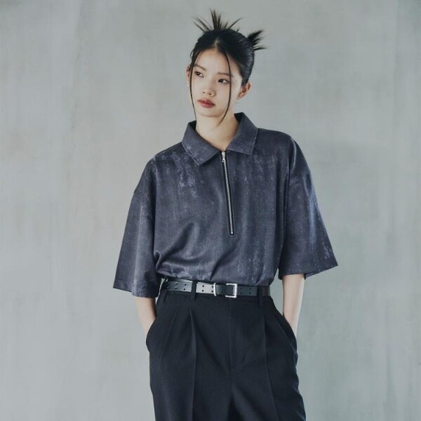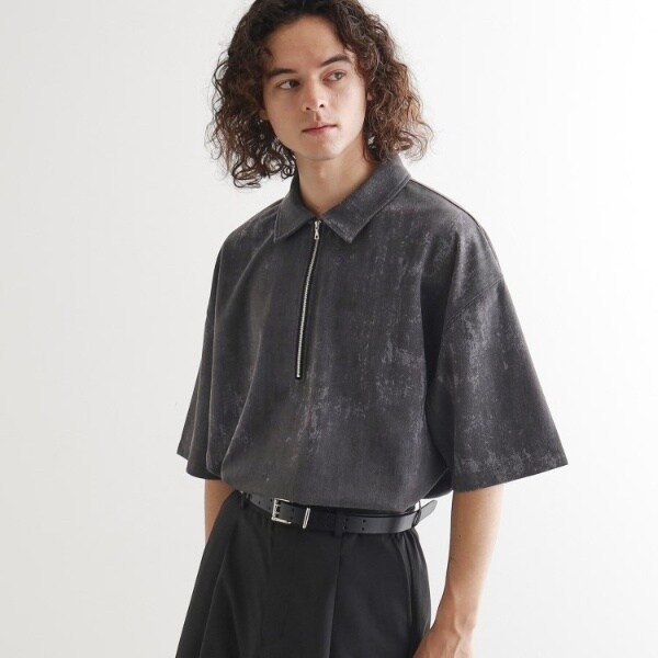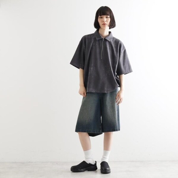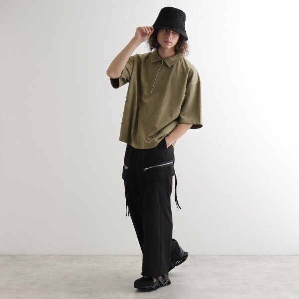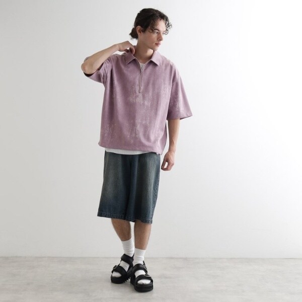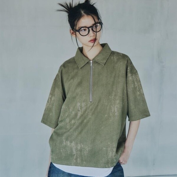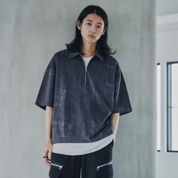 人気のハーフジップのポロシャツにトレンドのヴィンテージ加工を施した今年イチオシのデザインです。