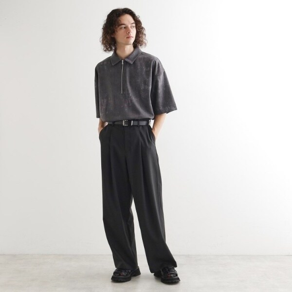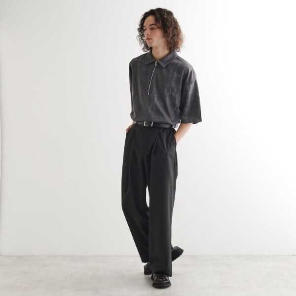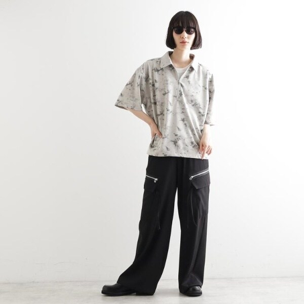 ゆったりとした身幅ながら短めのクロップド丈に仕上げているので、スッキリとしたシルエットに仕上げており、全体的なバランスが非常にきれいでモードな雰囲気のあるサイズ感、シルエットになっています。