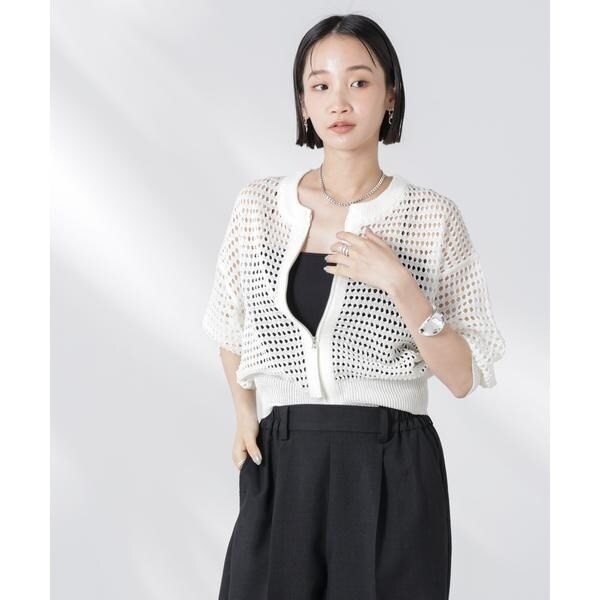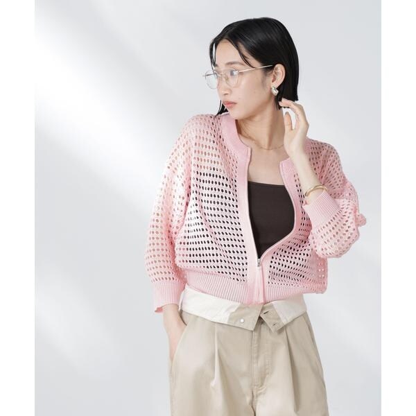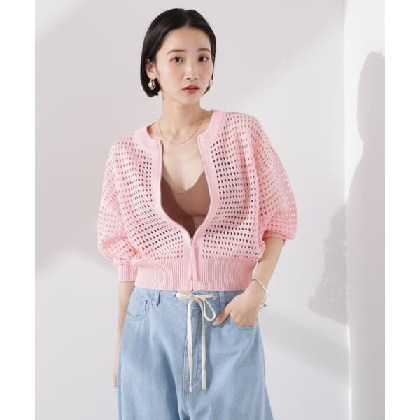 メッシュニットジップカーディガン