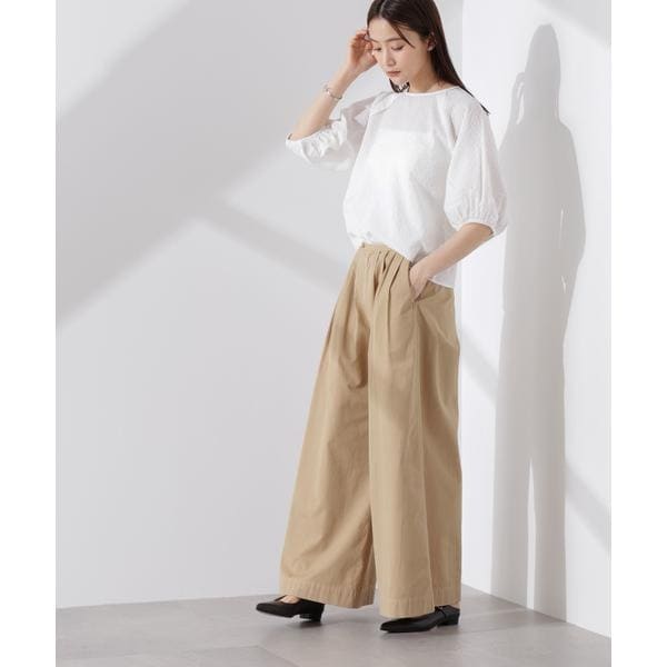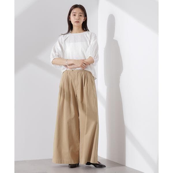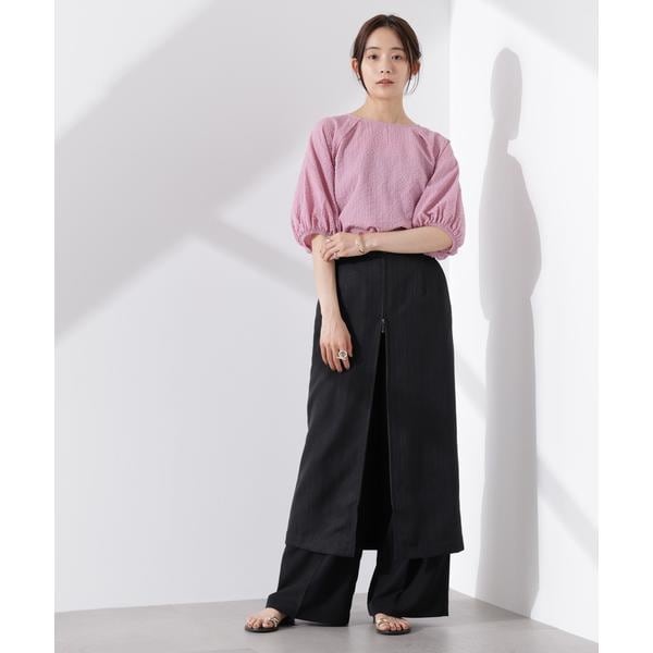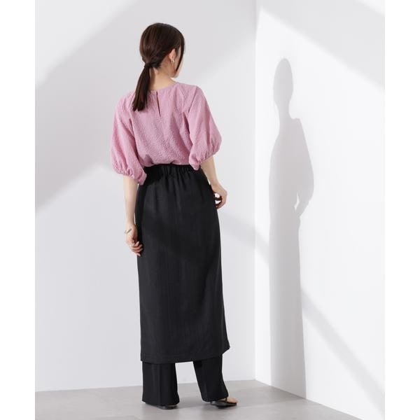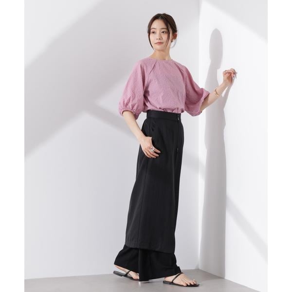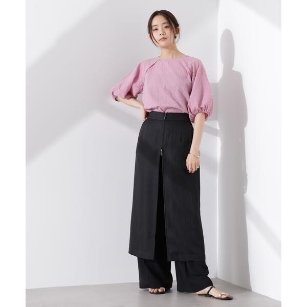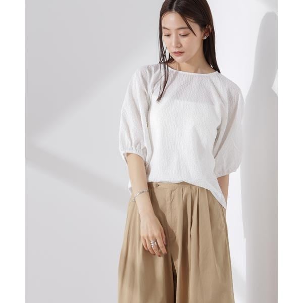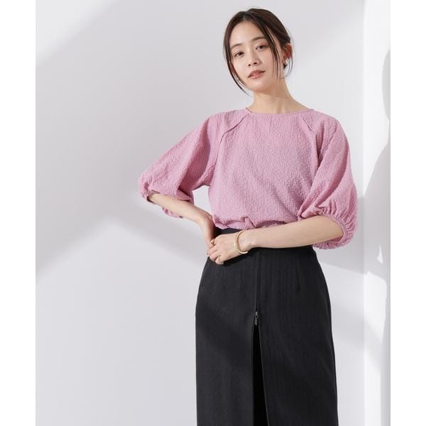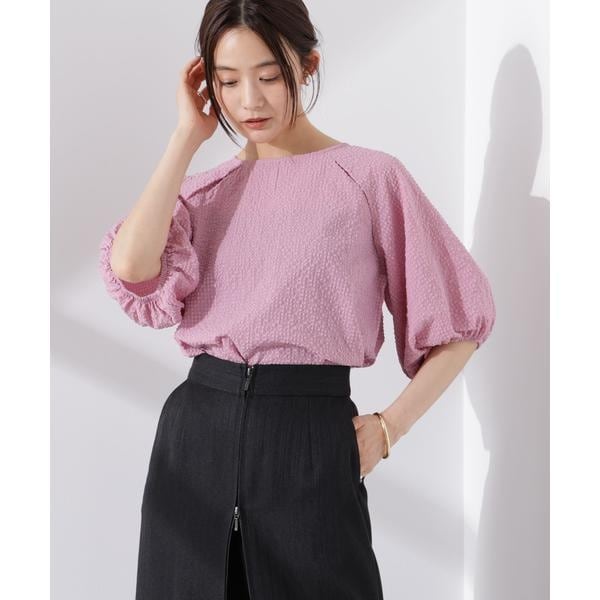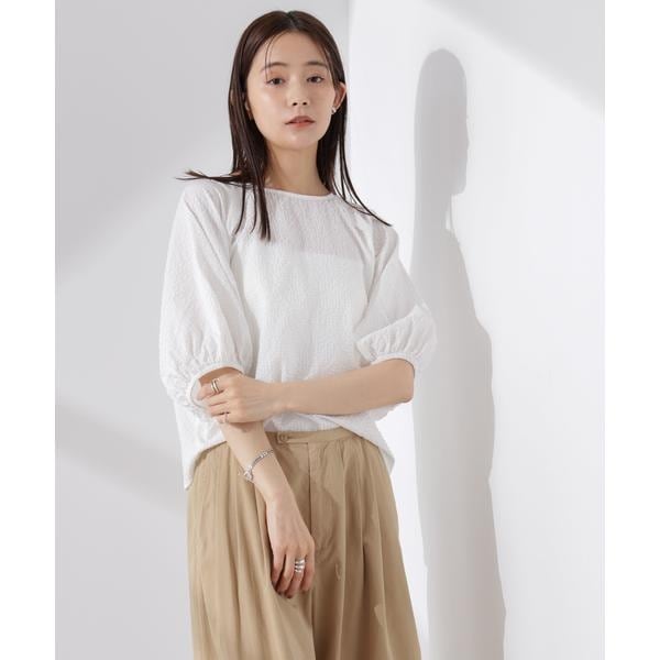 軽やかな着心地と、ふんわりした袖のボリュームが魅力的なデザインブラウス。丸みのある袖が大人フェミニンのスタイルにぴったりなアイテム。サッカー素材で着心地も良く清涼感があり、通勤、オフィスシーンや普段使いと様々なシーンで活躍できる一枚です。