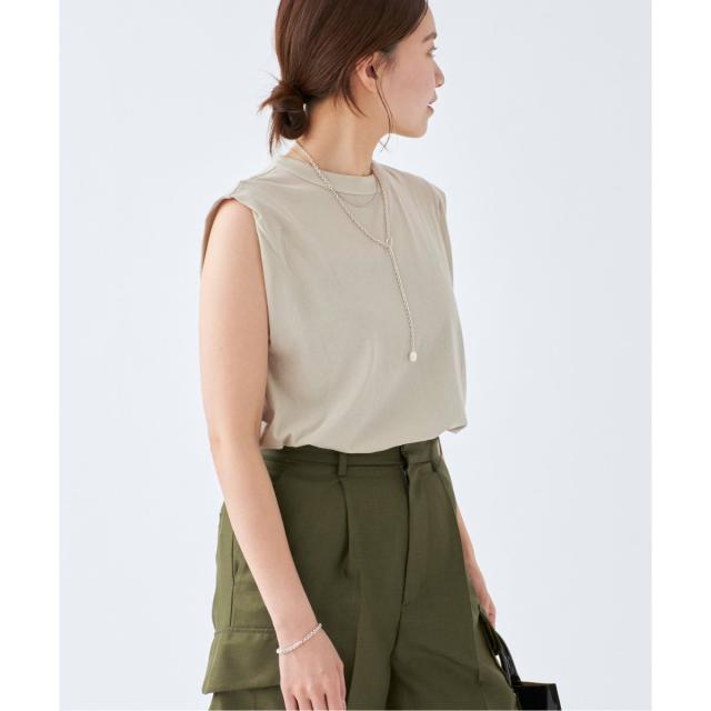 余裕のある身幅と太めのバインダー仕上げでスタイリングの幅が広がるスリーブレスカットソーは、折りあげたような袖口のディテールがさりげなく二の腕をカバーしてくれます。