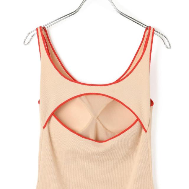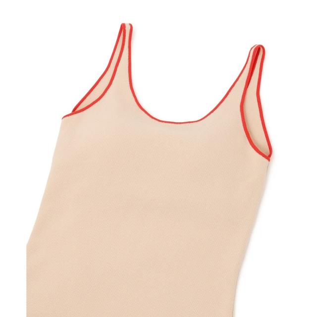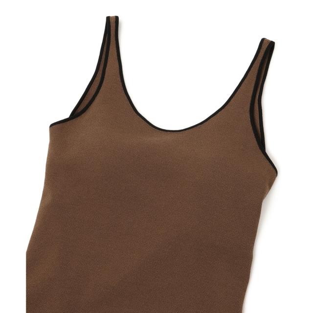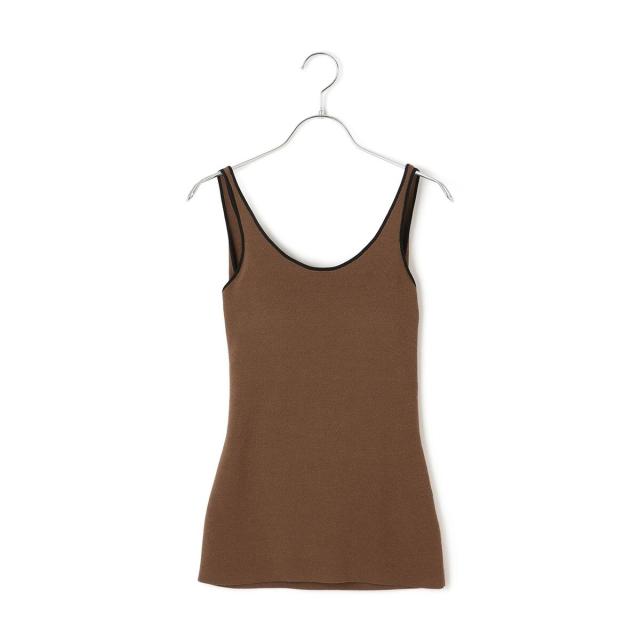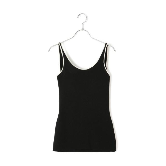 ヘルシーな肌見せスタイルにおすすめのカラーパイピングがポイントのニットタンクトップ。