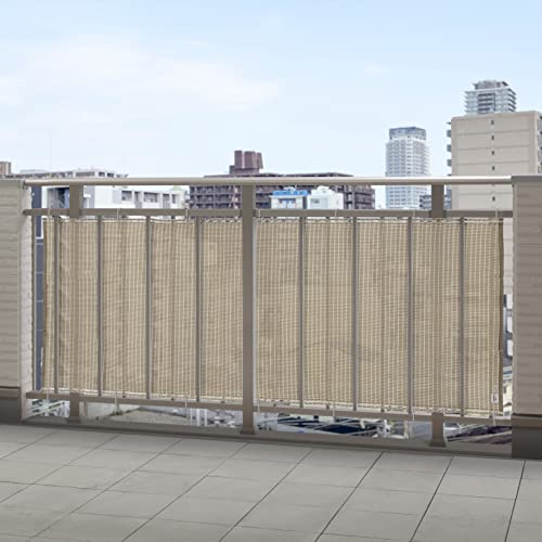 バルコニーの目かくし。3年保証(メーカー保証)。軽量設計で1m?あたり125g扱いやすさを実現。風をとおす。飛ばし編み加工により、従来品の1.4倍の通気性。(従来の飛ばし編みをしていない生地との比較)